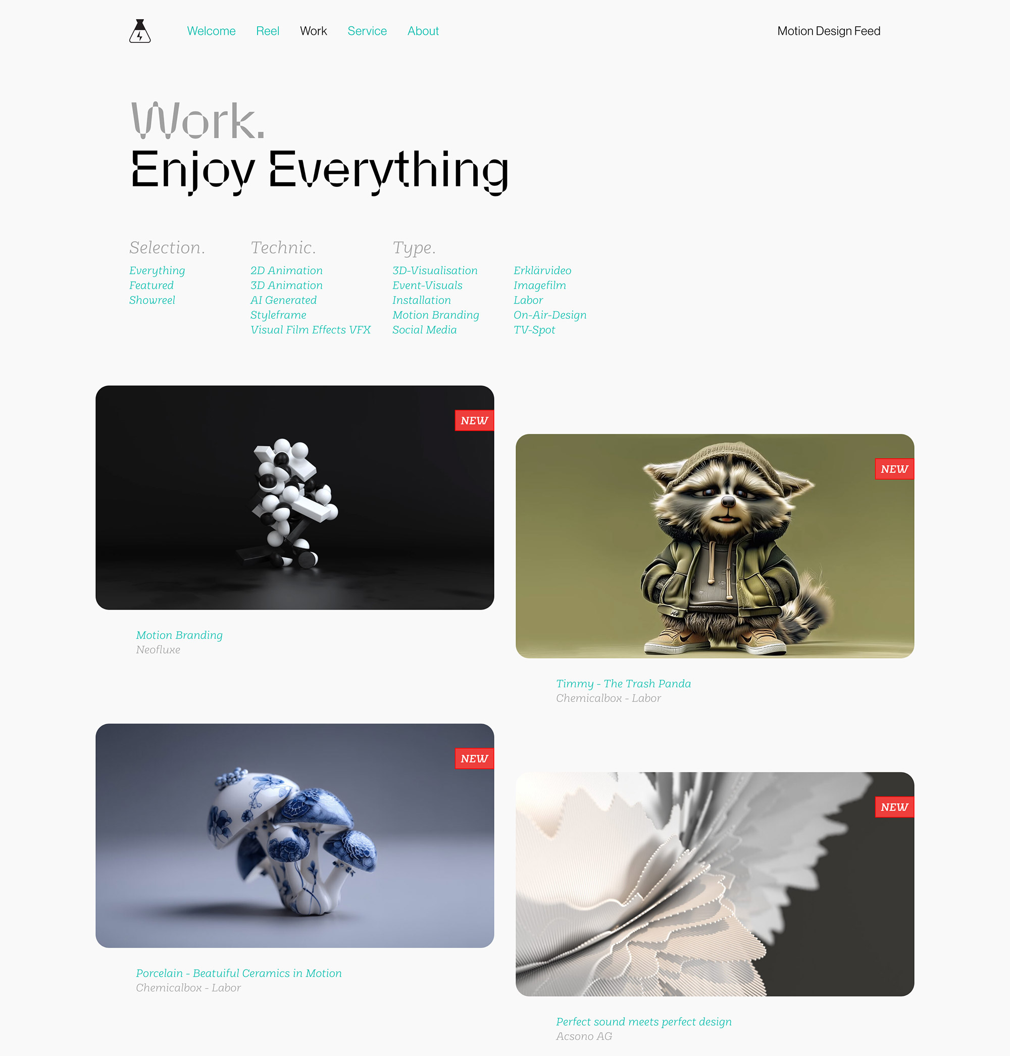 Le contenu est entièrement axé sur la présentation de vidéos. Le défi consistait à faire en sorte que le site reste ultra-rapide. Les extraits plus courts, par exemple pour les teasers, sont chargés directement depuis le serveur à la demande. Les vidéos plus longues sont intégrées via Vimeo.